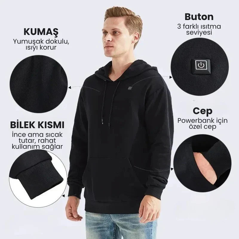 Soğuk havalarda üşümekten yorulanlar için geliştirilen ZUDDORA® Isıtmalı Hoodie; akıllı ısıtma teknolojisiyle saniyeler içinde sıcaklığı hissettirir.